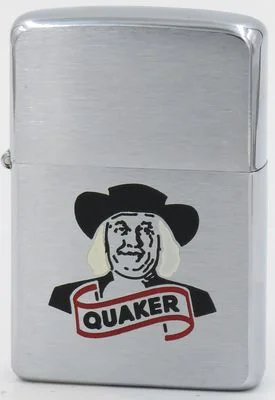 1958 Zippo advertising Quaker Oats. Founded in 1901 by the merger of four oat mills Quaker is an American food conglomerate based in Chicago owned by PepsiCo since 2001