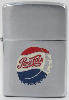 1960 Zippo with a Pepsi Cola bottle cap. The popular soft drink was created in 1893 and introduced as Brad's Drink, was renamed as Pepsi-Cola on August 28, 1898, and then as Pepsi in 1961