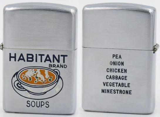 1953 Zippo advertising Habitant Brand Soups which has been producing soups in Canada since 1918
