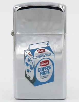 1974 slim Zippo advertising Coffee Rich, a milk and cream alternative