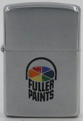 1964 Zippo with the Fuller Paints logo. Fuller Paint company distributed mirrors, paints, oils, window glass, brushes, varnishes, turpentine, glue, gold leaf, artists’ materials, throughout the western United States