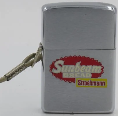 1965 loss-proof Zippo advertising Sunbeam Bread by Stroemann. Sunbeam Bread is a franchised brand of white bread, rolls, and other baked goods owned by the Quality Bakers of America cooperative.