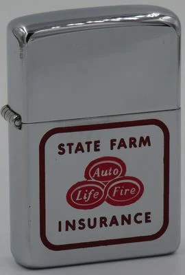 1957 T&C Zippo State Farm Insurance logo. The ovels in the center, Auto, Life and Fire, are hand-painted