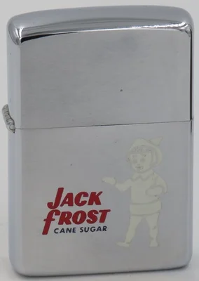 1967 Zippo for Jack Frost Cane Sugar. The "Jack Frost" brand was introduced by National Sugar Refining Co. in 1929