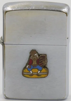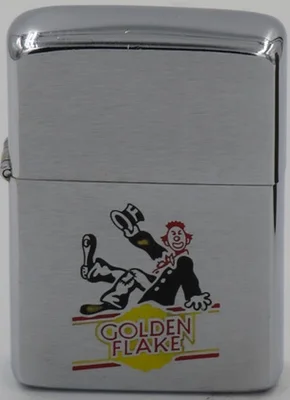 1961 Zippo with a graphic of Goldie, Golden Flake Snack Food's promotional clown