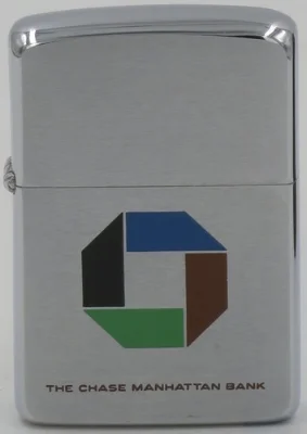 1961 Zippo with the logo of Chase Manhattan Bank. Formed in 1955, the bank was known as Chase Manhattan Bank until it merged with J.P. Morgan & Co. in 2000 and "Chase Bank" today
