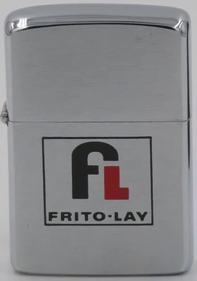 1963 Zippo with a Frito-Lay logo. Frito-Lay began in the early 1930's and is a subsidiary of PepsiCo. It manufactures, markets, and sells corn chips, potato chips, and other snack foods