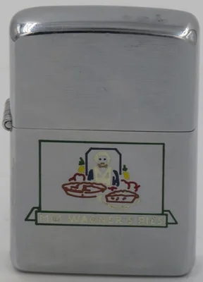 1957 Zippo for Mrs. Wagner's Pies. They were single-serving pies sold in waxed paper sold in the New York, New Jersey area. They were made until July 1969 when they went out of business
