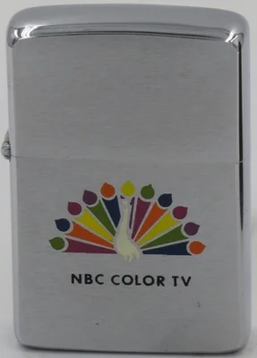 1965 Zippo with the NBC Color TV peacock. The NBC Peacock is one of the most well-known logos in since 1957 when color television was "brought to you in living color" by the peacock