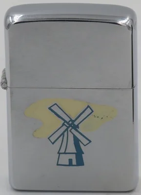 1955 Zippo with a windmill, possibly related to Van de Kamp Dutch Bakeries