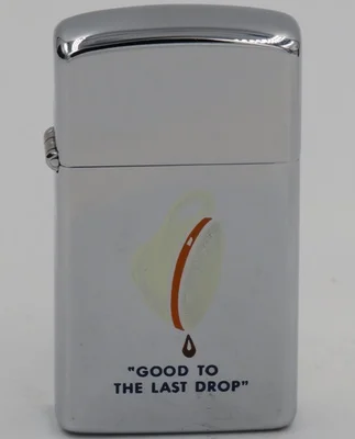 1961 T&C slim Zippo with the Maxwell House coffee slogan "Good to the Last Drop"