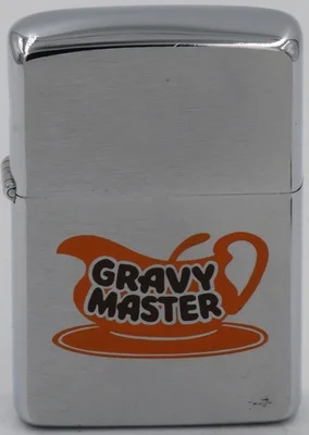 1962 Zippo with image of a gravy boat advertising GravyMaster. Introduced in 1935, made of ingredients ranging from pure cane sugar to herbs and spices, GravyMaster has become a staple in the home cook’s kitchen.
