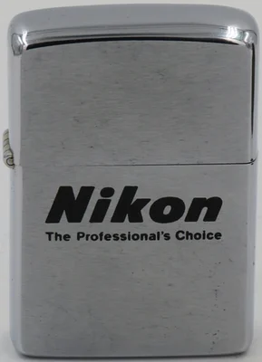 1976 Zippo for Nikon"The Professional's Choice". The Nikon Corporation founded in 1917 as Nippon Kogaku K.K. which became a leading manufacturer of optical lenses and photographic equipment