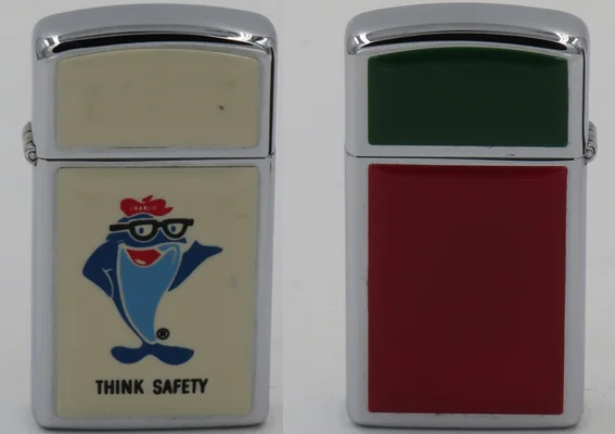 1978 slim ultralite Zippo with the image of Charlie the Tuna, the cartoon mascot for the StarKist tuna brand probably used to promote company safety. Not shown is green and red ultralite on the back