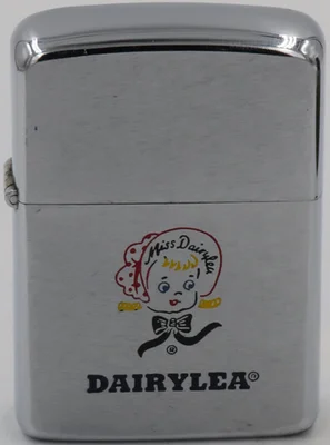 1967 Zippo with a graphic of Miss Dairylea. The iconic “Miss Dairylea” was introduced in the 1920s to help promote Dairylea products. She adorned promotional materials the dairy brand until she was retired in the 1970's