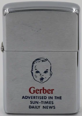 1966 Zippowith a graphic of the Gerber baby. Gerber was founded in 1927 in Fremont, Michigan, by Daniel Frank Gerber, owner of the Fremont Canning Company, which produced canned fruit and vegetables. At the suggestion of a pediatrician, Gerber's wife, Dorothy, began making hand-strained food for their seven-month-old daughter, Sally, and the rest is history