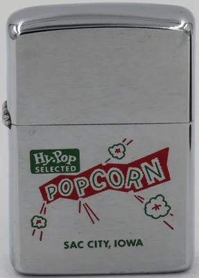 1964 Zippo advertising Hy-Pop Selected Popcorn in Sac City, Iowa
