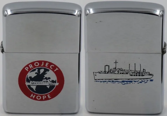 1967 Zippo for Project HOPE. Project HOPE is an international health care organization founded in the United States in 1958. Its most visible aspect was the SS HOPE, the first peacetime hospital ship