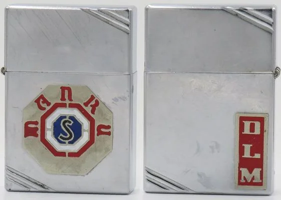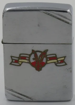1938-39 metallique Zippo with the early logo of Lockheed Corporation, an aerospace company founded in 1912 and later merged with Martin Marietta to form Lockheed Martin