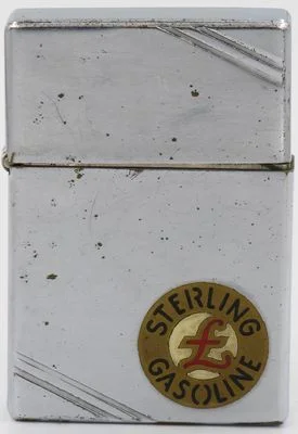 1936 metallique Zippo with the "B Square" logo of Barnsdall Oil Company which discovered the Barnsdall or Bigheart Oil Field near Tulsa Oklahoma in 1916