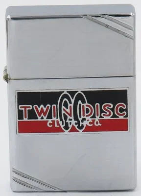 1936 Zippo with an early logo for Twin Disc Inc in metallique. Founded in 1918 by P.H. Batten in Racine Wisconsin, Twin Disc Inc introduced the first “twin disc” clutch for farm tractors