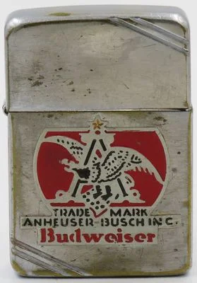 1940-41metallique Zippo with the early logo for Budweiser, a major beer brand owned and produced by the brewer Anheuser-Busch which was founded in 1890