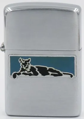 Rare 1946-47 metallique Zippo with the image of a large feline at rest
