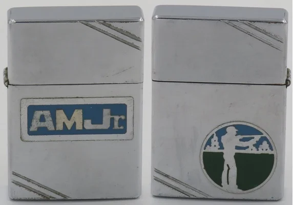 1936 Metallique Zippo with the Hunter design on one side, the initials "AM Jr." on the other