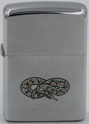 Rare 1966 prototype Zippo Rattlesnake lighter, the snake is an artwork error. The rattlesnake's tail is pointed down when the tail should have been pointing up